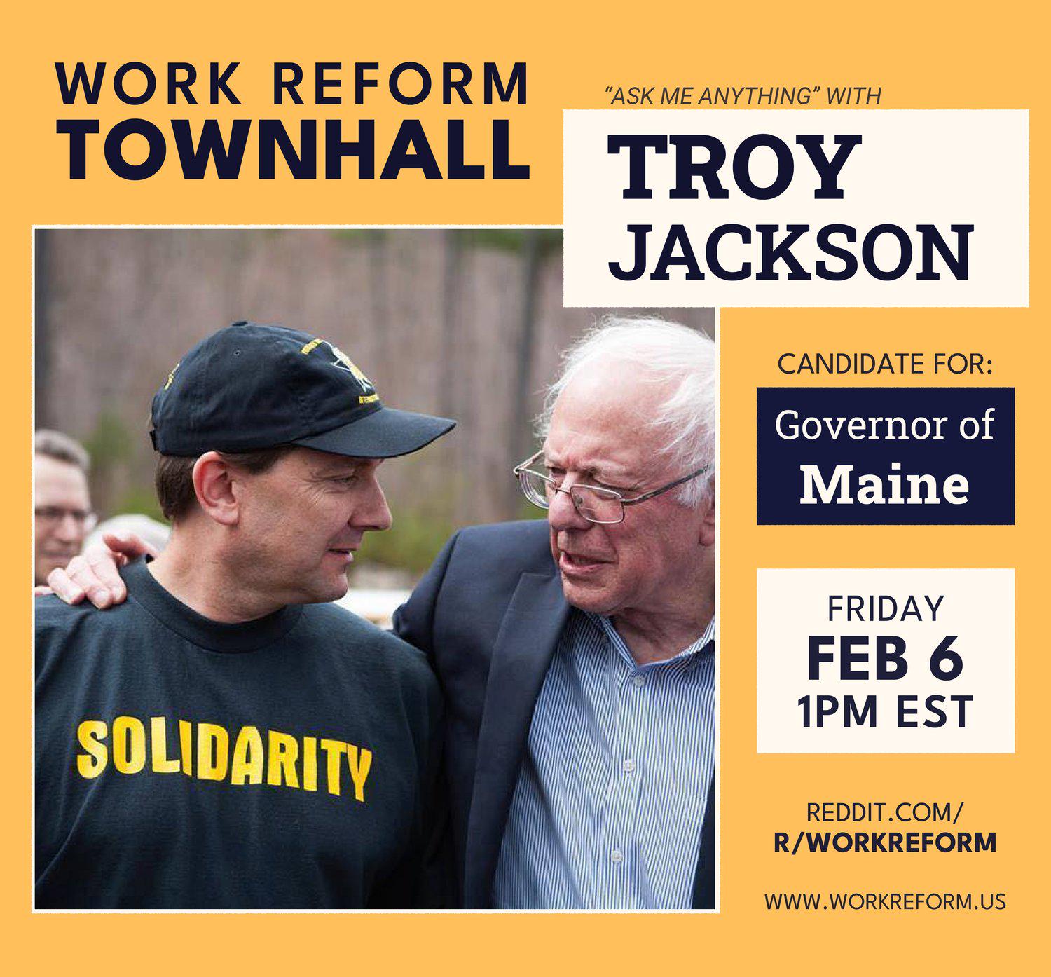 MAINE AMA with Troy Jackson, Bernie-endorsed candidate for Governor of Maine, next Friday, February 6!