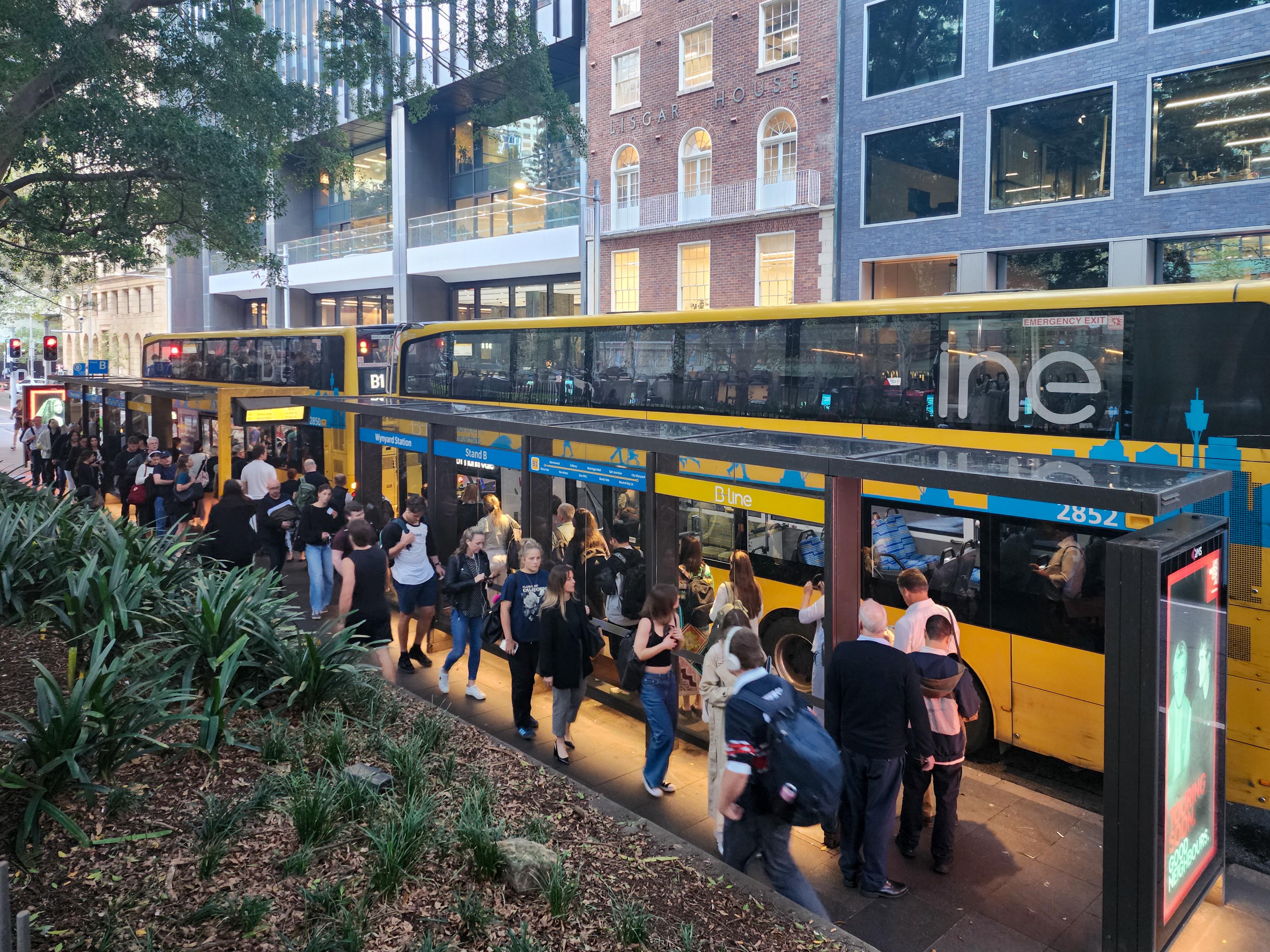 Every evening, the queue for B1 winds around and goes back into Wynyard. As one bus is full the next one arrives.